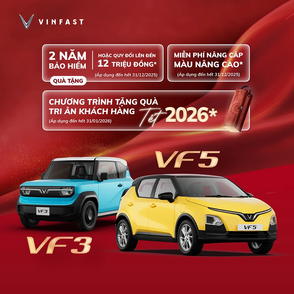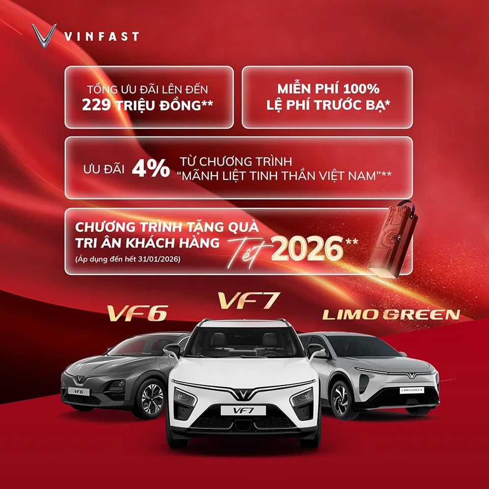 Khách hàng ký hợp đồng trong thời gian 01/12/2025 – 31/01/2026 sẽ nhận quà tặng đặc biệt từ VinFast.