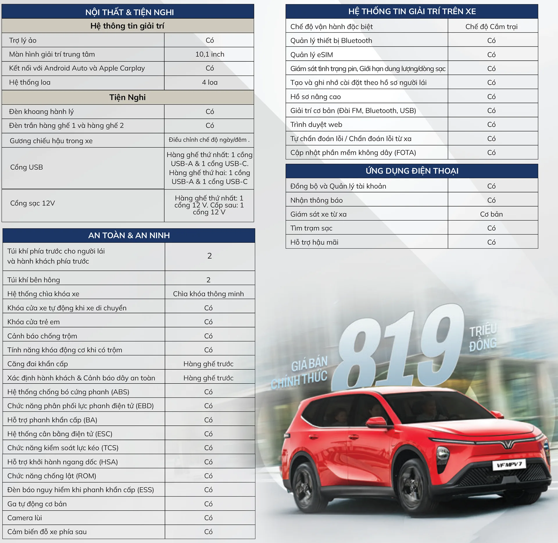 | Giá xe bao gồm pin | 819,000,000₫ | 769,860,000₫ |
